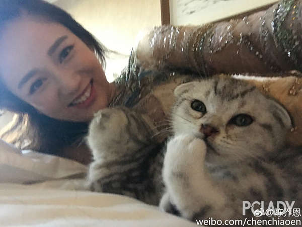 我们经常看到的她是这样的:拍杂志的时候与猫咪一起玩,笑得像个孩子似的。