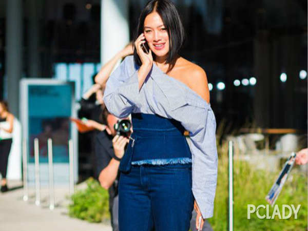有时候不对称搭配又会让人惊艳。设计感十足的单露肩上衣搭配牛仔裤,不管是故意还是非故意,你不可否认,这样的不对称造型真的很美。