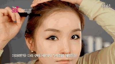 2、对于需要有层次的位置,可以使用睫毛膏或染眉膏沿头发根部刷,让发际线看上去更有层次感,还可以划拉一些碎发出来,会显得更自然。