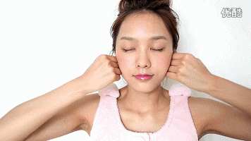 双手半握拳放在下巴两侧,沿着脸部轮廓向上提拉,以加速血液循环,使淋巴保持通畅。