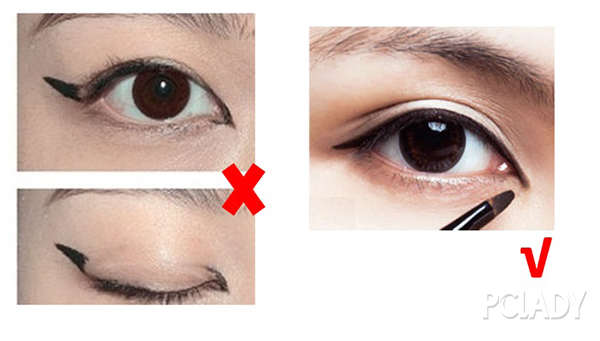 与之相反还有一种是下垂眼线,本身就是下垂眼的宝宝一定要避免,但是刚好上挑眼的菇凉们可以用起来。