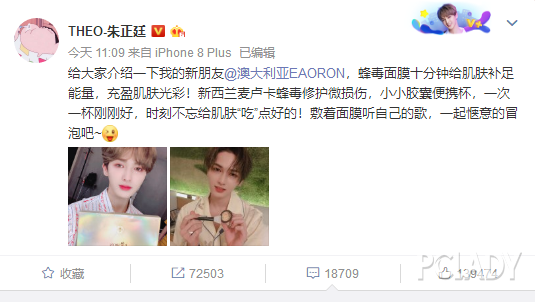 都说女性喜欢追求引人注目的美和定格时光永恒的青春,在颜值PK和才华比拼的年代,爱美成为当下核心关键词之一。而面容作为“美”的最直观表象,其保养修护尤为重要。继张雨绮等面膜带货女王之后,人气小生朱正廷成为新晋面膜带货王子。近日,朱正廷安利的EAORON澳容蜂毒面膜掀起一股面膜“中毒”潮。