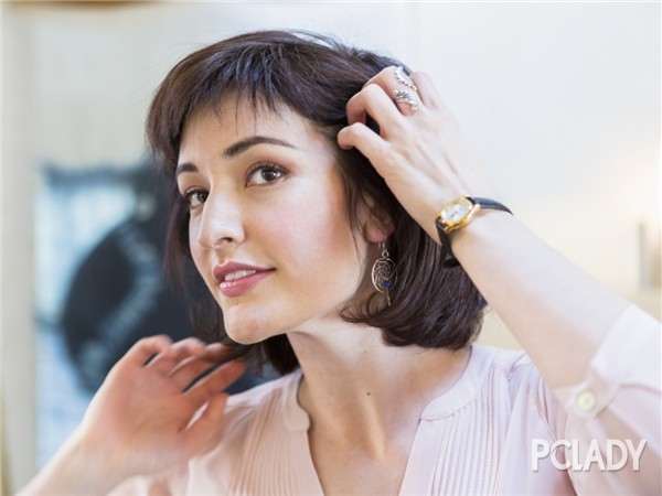 圆脸适合的这款波波头卷发的刘海是属于偏短款的齐刘海,荡漾在脸颊处的卷卷头发与薄薄的齐刘海结合,不仅可以帮助到妹子迅速提升颜值,而且还能消弱圆脸脸颊的嘟嘟肉肉感。