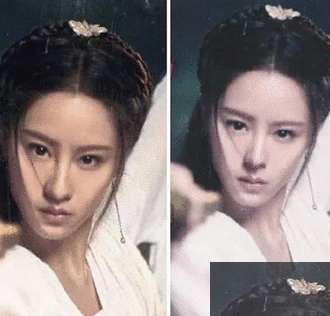 浓重的鼻影有一种“整容脸”的既视感,放大了鼻子,把人所有的注意力都集中在鼻子上,好好的一个小龙女感觉跟网红假扮似的,完全缺失了小龙女的仙气,P图过后,感觉顺眼了很多。