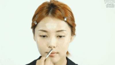 轻轻的在鼻子的两侧扫上暗影,但是不要扫到鼻尖上,鼻头两侧和鼻孔下方可以扫几下,,不管是使用膏体还是粉质的暗影都是一样的。