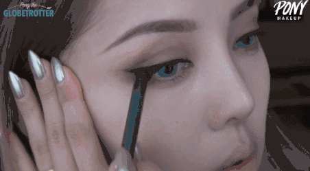 STEP2:填充好内眼线后,将眼线向后上方拉,勾勒出猫眼的形状,并加重眼尾的眼线。