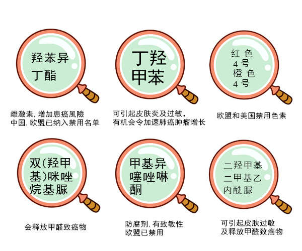 成分筛选中,6款面霜被查出含有禁用成分,也被我们淘汰了。这么多面霜的不及格,其实我们是可以在购物的时候,多留一个心眼,看看成分表,避免成为有毒面霜的白老鼠。