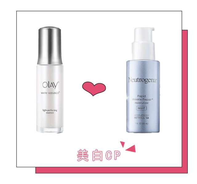 两者都同时具备了美白和抗老功效,但烟酰胺侧重于美白,A 醇侧重于抗老,可以说两者在功效上属于互补状态,不会发生冲突。烟酰胺可以降低A 醇的刺激性,A 醇可为烟酰胺抑制黑色素助力,可谓是强强联合了,想要美白抗老的朋友,一定要记住这个CP组合。