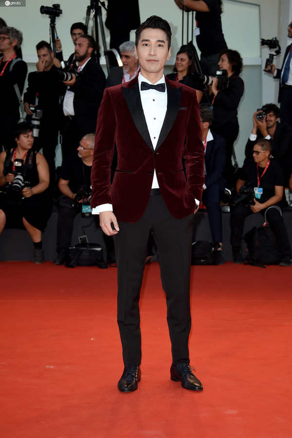 除了发布会上的Polo衫,赵又廷的红毯look也算是很有技巧性了!他巧妙的避开了会与大多数男性撞衫的黑色西装,选择了尊贵绅士的红丝绒装外套搭配黑色西装长裤,一方面跟巩俐的礼服相呼应,另一方面从颜色和材质上来说就比别人突出了很多!