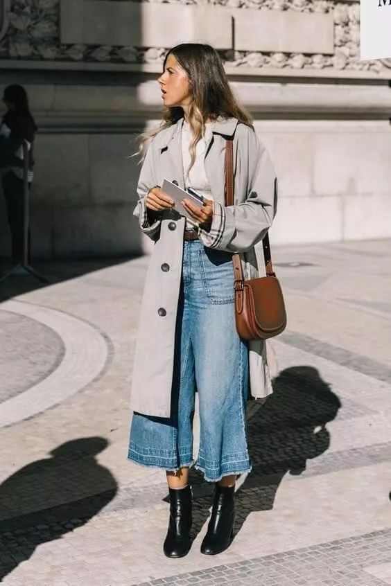 秋日风衣和阔腿裤是一对锁住的CP。秋天的飒爽加上北风的吹拂,在飘逸的风衣和阔腿裤之间尤为明显。