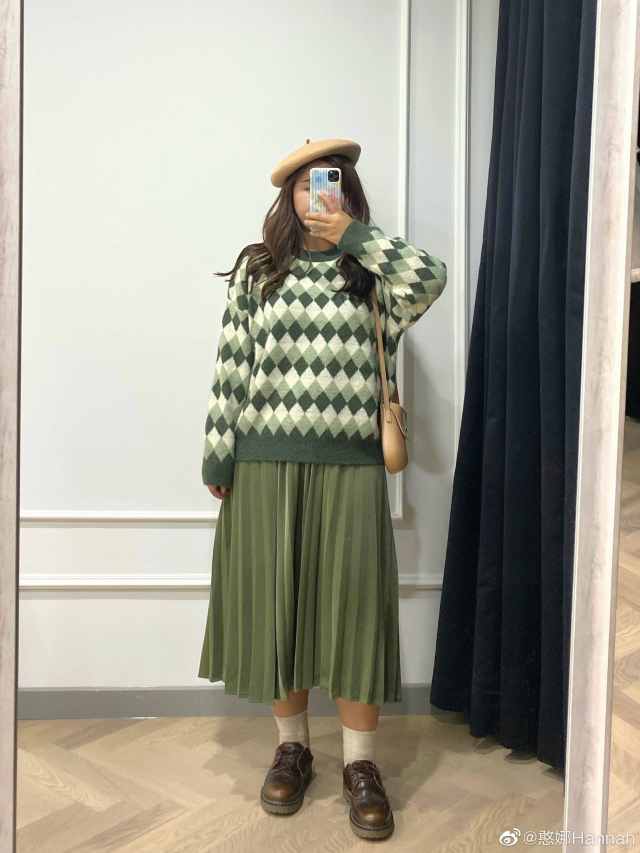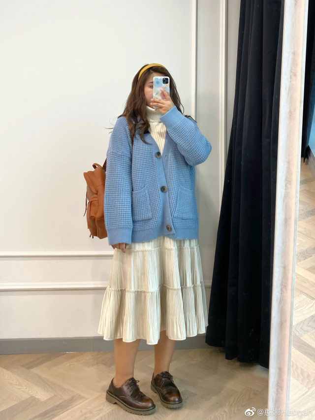 虽然是微胖girl,但是憨娜在色彩穿搭上从来都不是无聊的黑白灰,饱和度较低的颜色在她的衣橱中都能找到归属喔~