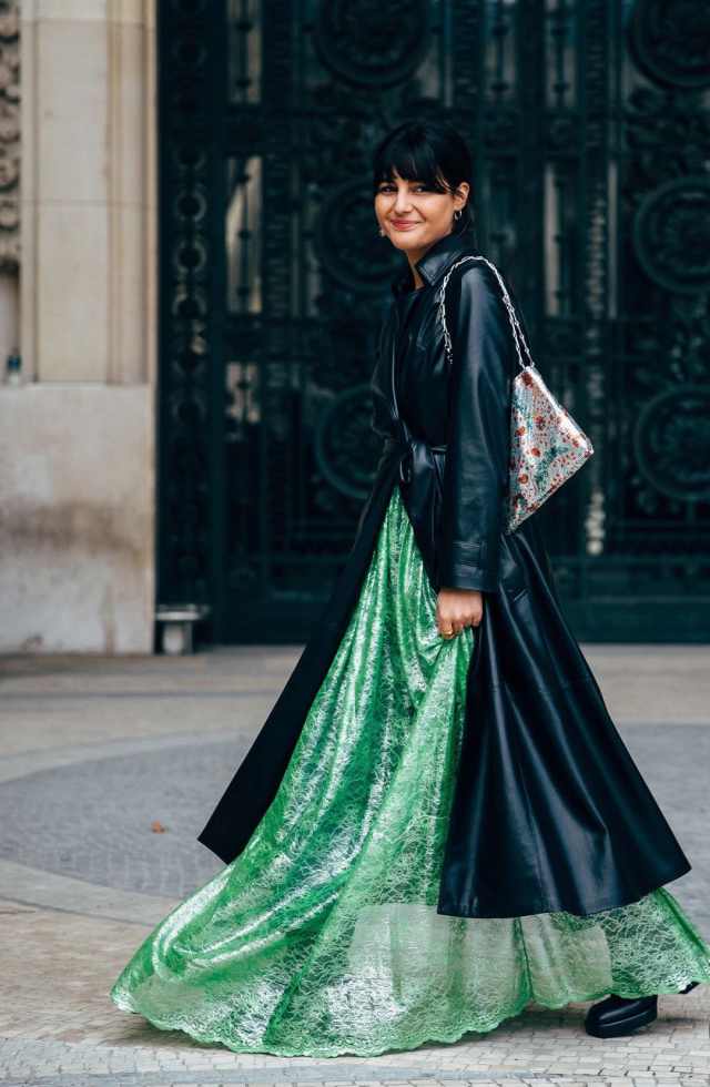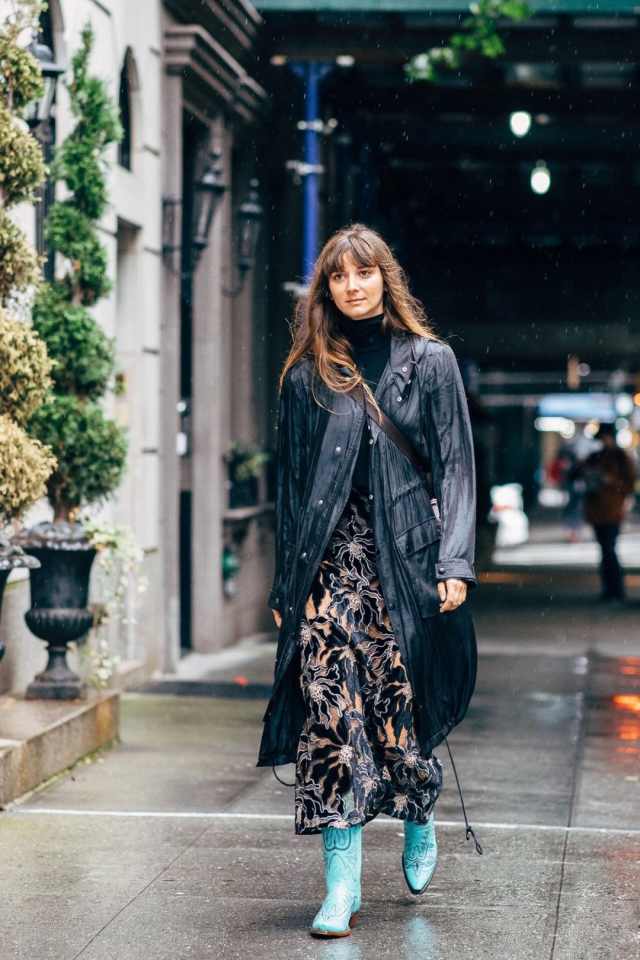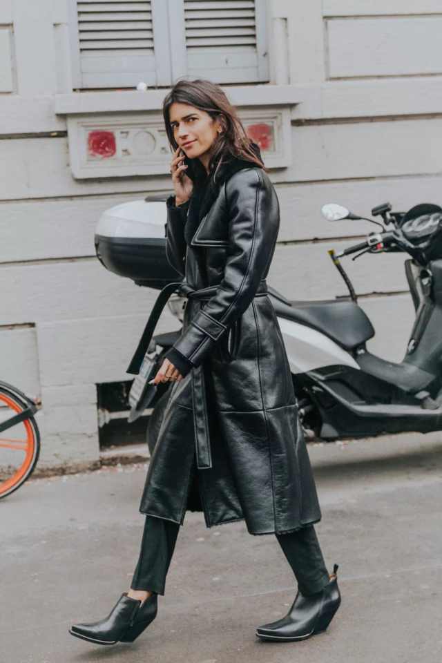 皮革材质的黑色大衣酷劲十足,可以搭配丝绸、碎花等优雅有女人气质元素的单品,更有西部风情。