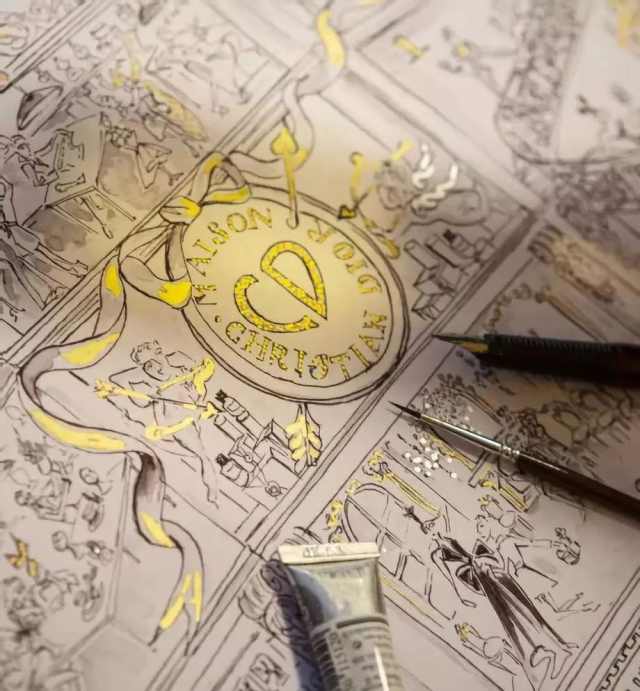 打开礼盒,看到的是坐落在巴黎蒙田大道30号的旗舰店,由艺术大师Vincent Darré亲手设计,据说是对1950年代戏院的致敬,并揭开Dior高级订制工作坊的工艺奥秘。