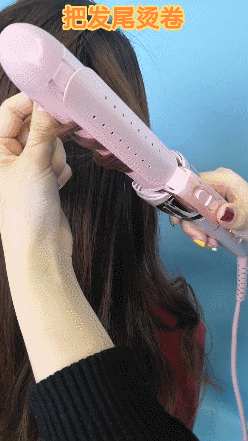 ①编发前需要用大直径的卷发棒把发尾烫卷。