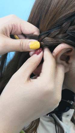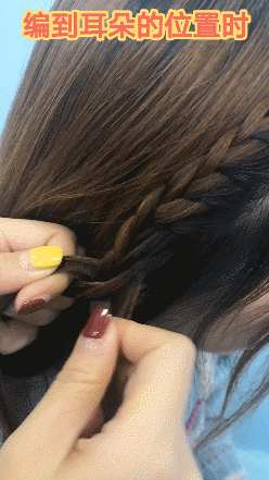 ③编到耳后位置时就可以开始编麻花辫啦!