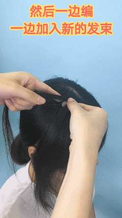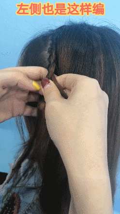 ②在编麻花辫的时候,要注意一边编一边加入新的发束,同时加入的发束也不能太多。另一侧也是这么编哦~