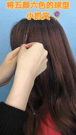 ④最后把五颜六色的球型小抓夹加在麻花辫上,记得夹的时候要注意加入新的发束哦~另一侧只需要加上抓夹就行啦!PC酱就不多演示啦~