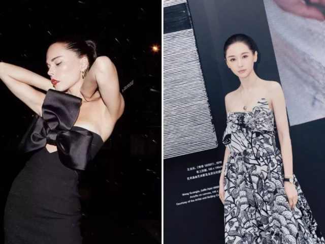 想要高调,但还不想让别人看出来的纠结星人,可以尝试一件亮片单品搭配黑色的look,你看杨幂和刘雯的礼服就相对来说低调了很多~
