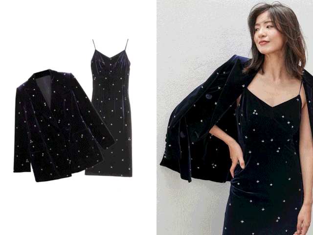 除了连衣裙,搭配一身亮片套装就是比连衣裙更有搭配功力的的穿法啦,但是效果差不多,只是可能会更高级和暖和一点~