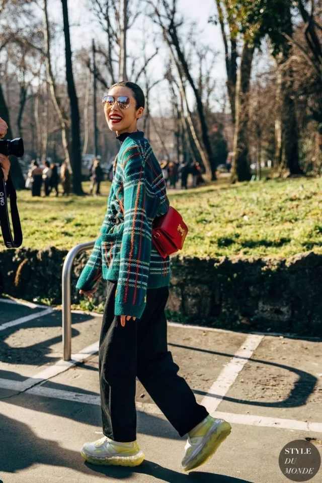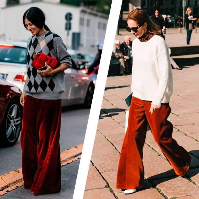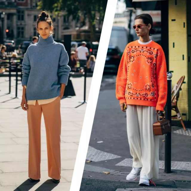 不同于卫衣的街头感,毛衣总给人带来一种优雅端庄的气质,所以姐妹们可以尝试一下灯芯绒或丝绒材质的阔腿裤,遮肚子的同时还能遮腿,全身都有肉的姐妹可以学习一下,但是记得腿长不够鞋跟来凑!