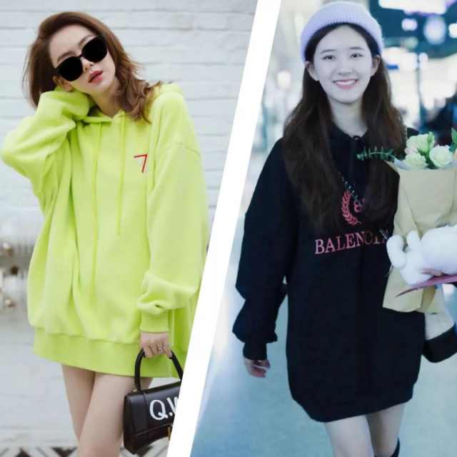 所以在选择卫衣时,姐妹们一定要选择长度可以遮住肚子的稍长款卫衣,最好是到臀部的位置。