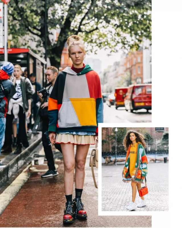 除此之外宝贝们还可以通过叠穿来增强时装的层次感,转移造型重点的同时也加厚衣服的厚度,这样对肚子上肉肉会有更好的遮掩效果~但记得卫衣一定要选择宽松一点的码数嗷!