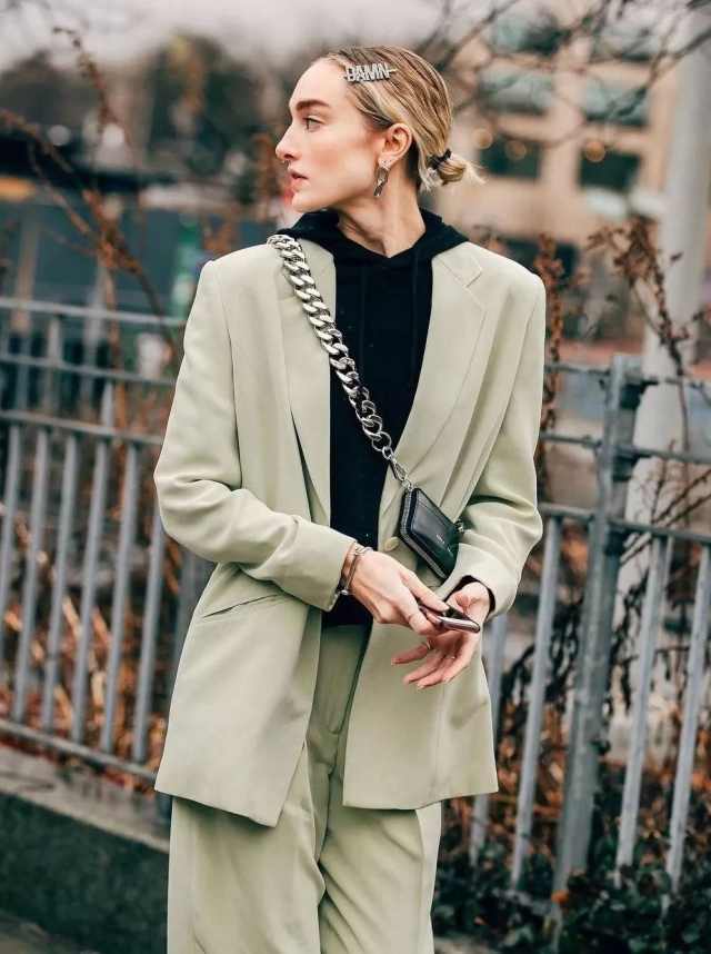 袖围较小且不会过于肥大的毛衣款式更适合作为内搭穿在西装外套和大衣里面哦,建议姐妹们选择外套时尽量选择oversized款式!