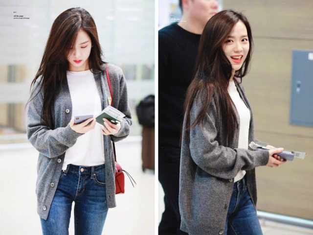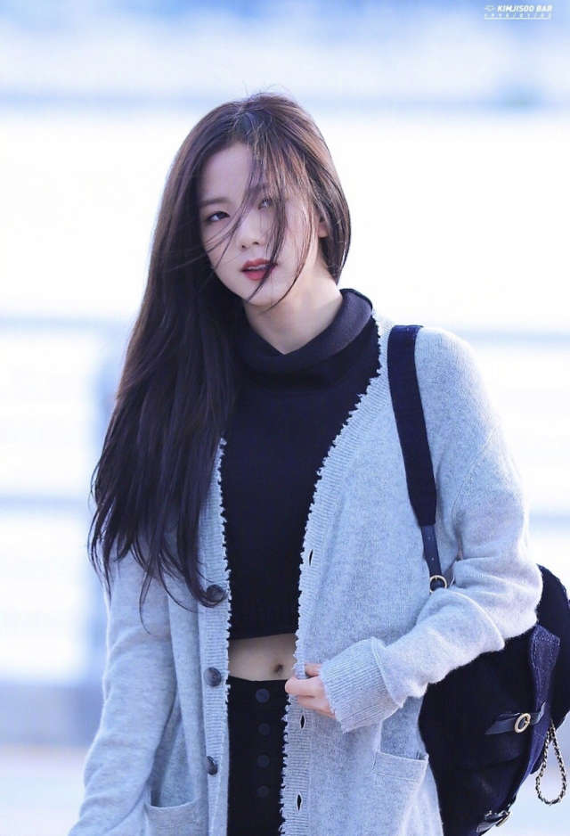 JISOO很喜欢穿灰色针织,各种款式都有。一般的灰色针织开衫她会搭配间接的黑白T恤,也会选择稍短的款式在视觉上拉长比例!