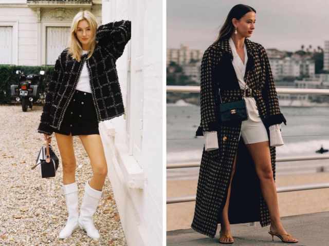 其次,小香风外套内最好搭配一件基础款式的白T恤或者同为简洁休闲类型的打底衫~T恤做内搭的休闲舒适感会让小香风外套没有那么拘谨!