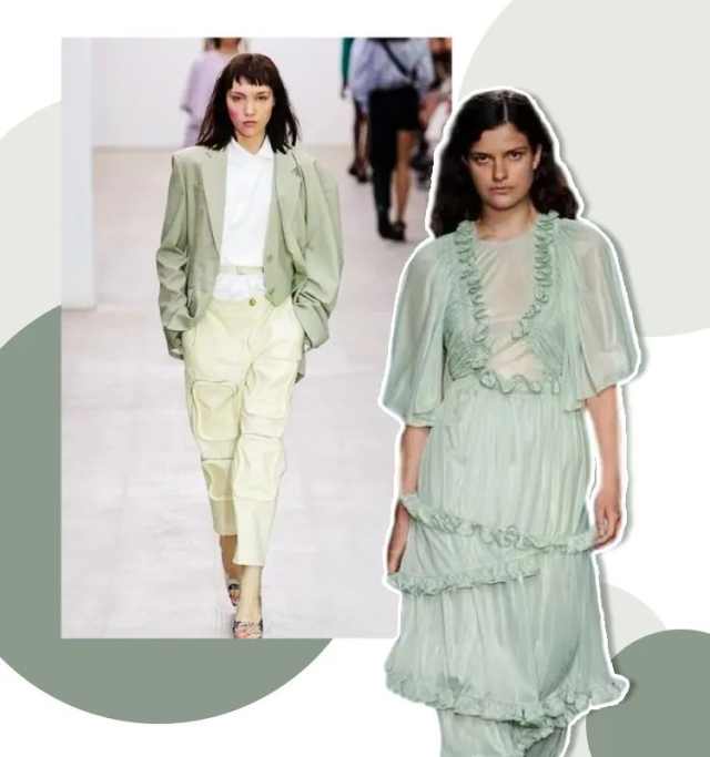 相比起去年流行的牛油果绿,鼠尾草绿更适合现在还带点微凉的春天。牛油果绿亮度高,活力感满满,但鼠尾草绿加强了灰调,更显气质。而且不挑肤色,包容性更强。