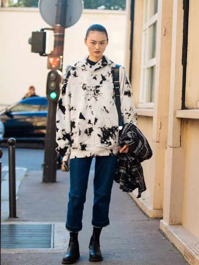 靴子真的是可以从春天再穿到冬天的万能单品,几乎没有它不能搭配的下装,这么好用的神器,贺聪怎么可能不选。你看她,随便一条牛仔裤再来一双靴子,就能立马穿出满满的街头感!