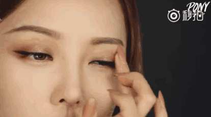 STEP5:用手指沾取一些珠光的香槟金眼影,轻轻涂抹在眼皮上。