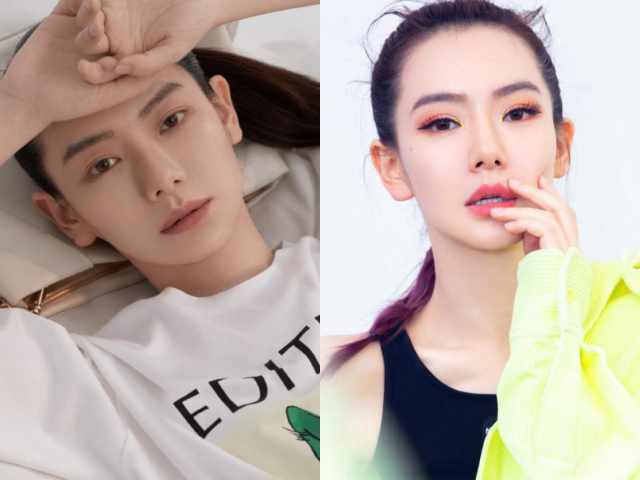 康康这强烈的反差!大面积的橙色眼影晕染,眼头以钻石点缀,浓重的睫毛瞬间放大双眼,再加上一抹浅色系的淡粉口红,右边的戚薇是甜美的公主没错了!