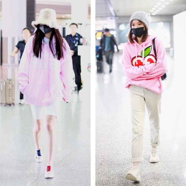 之前少女气质爆棚的杨幂和程潇都在机场look中都演绎过粉色卫衣的搭配,腿精大幂幂选择搭配短裤秀出长腿,活泼减龄,程潇则选择搭配一条万能的米白色长裤,温柔可人。既然两位大明星都选择了粉+白的配色,那么这个配色公式姐妹们一定要记好啦!