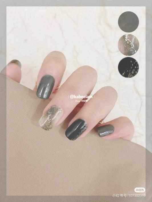 相比上一款,这个墨绿色看着会通透,更显优雅气质,而且黄皮也可放心涂哦!带有透明感的绿色、白色和贝母贴片搭配在一起,低调又华丽!对于不喜欢复杂图案又想要别致一点的女生来说,做这款准没错!