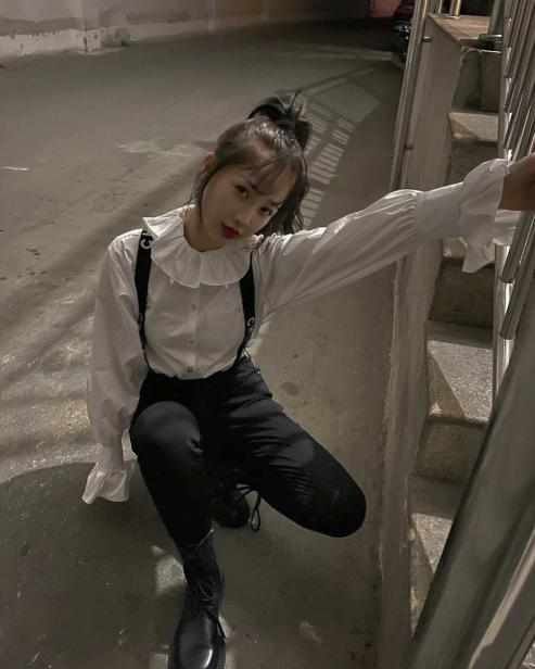 再看虞书欣的另一套,宫廷风蕾丝衬衫搭配黑色排扣背带短裤,这款蕾丝衬衫超级仙气,完美的修长颈线,典型的精致小香风~背带短裤是宽松的版型,黑色短裤超级显腿长有没有!裤子上排扣的设计使整身look时尚感满满~