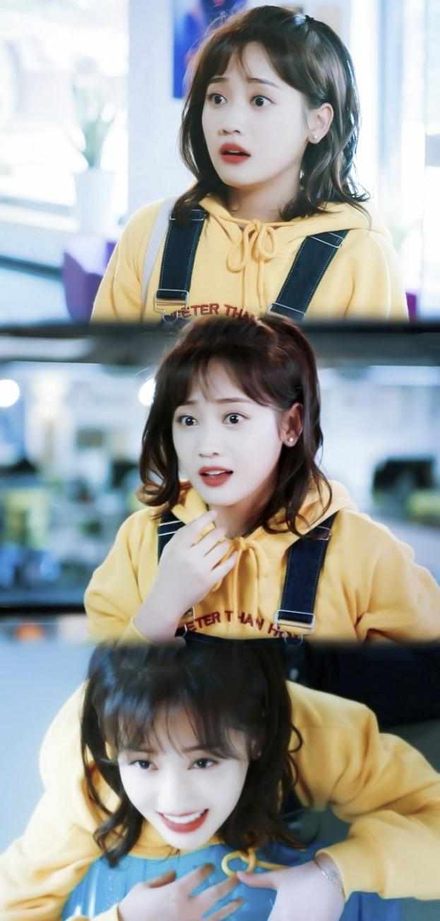 傅菁身着柠檬黄卫衣,衬得人又白又元气,搭配灰色牛仔背带裤,前面两个口袋增加了这身look的趣味感,既能放手机又能增添时尚感,轻松活泼的一身穿搭就完成啦~
