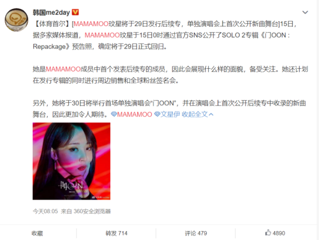 文星伊是韩女团mmamoo的成员,无论是演唱水准,还是舞台表现力,妈妈木在韩圈女团里面真的是独树一帜,信听妈妈木可不是浪得虚名的~
