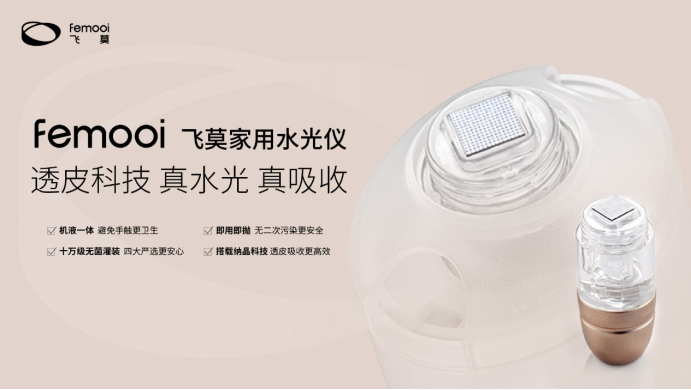 相较于传统的线下美容项目,使用家用美容仪在家轻松享受水光护理。飞莫家用水光仪自带水光/嫩肤两种模式,供消费者自由选择使用。通过透皮科技利用纳米微晶打开肌肤吸收通道,让营养成分吸收率有效提升。水光模式需配合专属精华;嫩肤模式则可以每日搭配自用的护肤品,帮助皮肤更好的吸收。