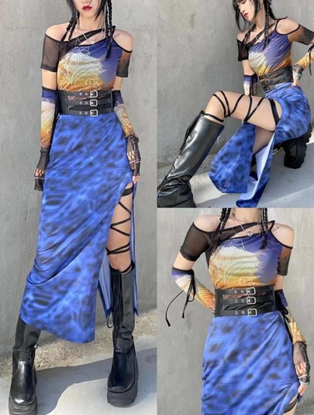 繁复又细致的色彩颇有些霓虹酒吧的味道在,在服装上则是通过一些扎染与刺绣来完成服装上的未来科技感。