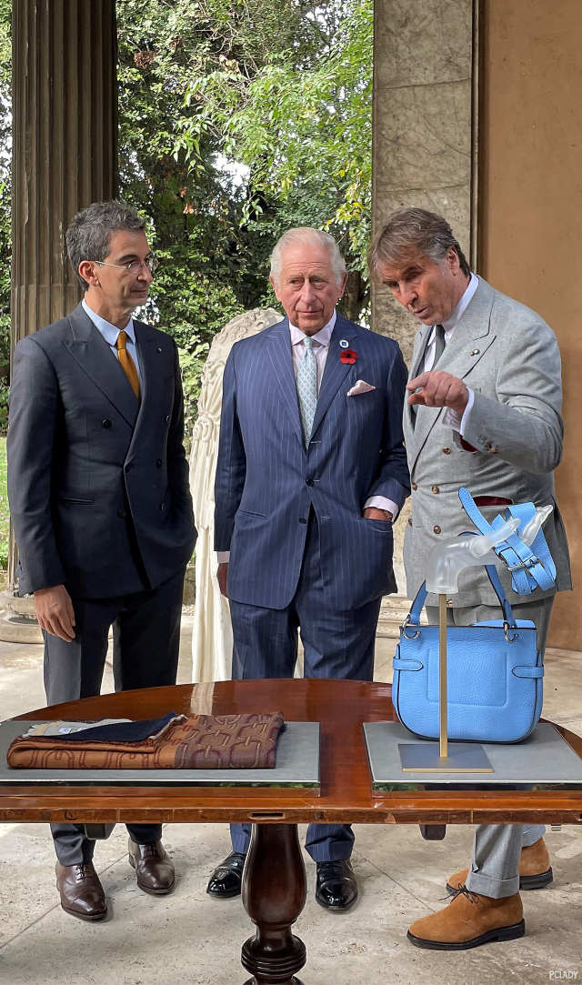 图:威尔士亲王殿下(中)、Brunello Cucinelli(右)和Federico Marchetti(左)于英国驻意大利大使官邸沃尔孔斯基别墅,摄于罗马G20会议(2021年10月30日至31日)期间 “可持续市场倡议”首个项目的介绍。