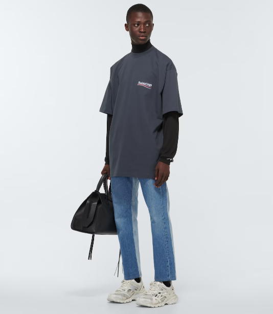 Balenciaga?Logo 棉质 T 恤采用棉质面料,通常会带来柔软、亲肤和透气的穿着感受。而品牌的 Logo 设计是其重要特征之一,具有较高的辨识度。Balenciaga 的设计往往大胆而独特,其 Logo 棉质 T 恤可能在 Logo 的呈现方式、字体风格、大小或位置上有独特的处理,展现出品牌的个性与时尚态度。