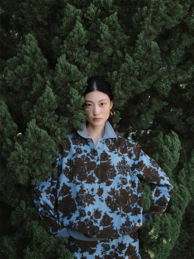 手绘花卉,灵感源于城市公园的自然之美,捕捉那些轻松且富有灵动的瞬间,用独特的设计形态展现几何感的空间造型,给人轻松且富有结构的极简感,也是JNBY本季的一大亮点。