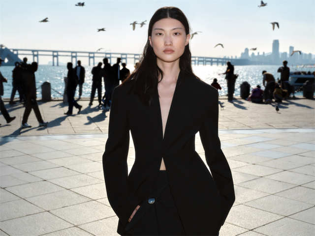 新年系列,从中国古代磁器纹样中获取灵感,用剪纸的方式提取东方花和蛇年纹样。在传统经典轮廓的基础上,大胆运用现代语言进行重新诠释,以简洁流畅的线条勾勒出纹样的灵动之姿。新年系列还采用改良的盘扣设计结合精致的金属件,融传统美学与现代剪裁于一体。版型设计追求宽松舒适,兼顾自由活动与优雅,是都市松弛之选。