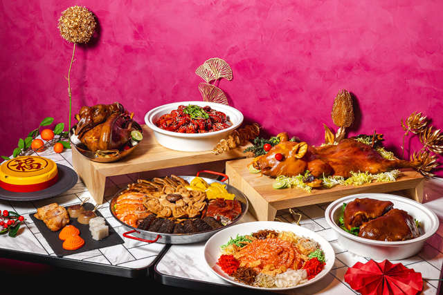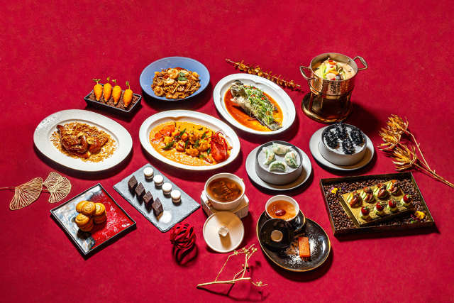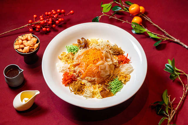 特色菜单的一大重点是备受喜爱的农历新年美食——捞喜,以三文鱼、黄金薄脆和蔬菜丝调制而成,定能激发味蕾。作为围炉共享的不二选择,捞喜不仅寓意来年的好运,也象征着繁荣昌盛。菜单还包括粤式烤乳猪、潮州卤水鹅、红烧猪蹄膀等招牌菜。