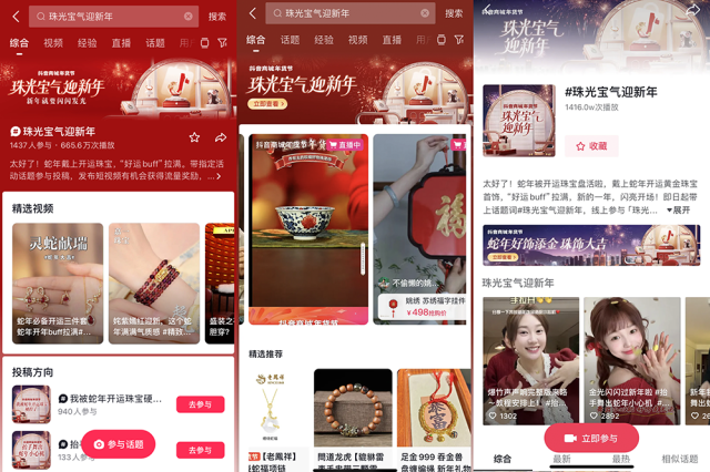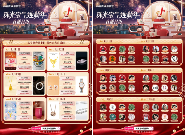 新年“饰”不可挡,象征着吉祥、好运的黄金珠宝、翡翠玉石等,向来是人们点缀过年穿搭、祈愿新年好运的必备元素。仅在去年春节期间,珠宝首饰相关内容话题播放就超50亿,互动量环比增长38%。1月11日,抖音商城年货节珠宝潮奢品类日开启,与你一起「珠光宝气迎新年」。