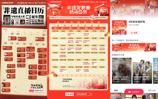 非遗内容创作者、垂类手工达人将积极参与「年味非遗手工艺大赏」活动,展示非遗技艺与年味文化传承,吸引全民围观。此外,#春节非遗玩法大全 、#用中式浪漫打开中国年 、#非遗才是年味天花板等热点话题也即将上线,与万千用户共享年味。