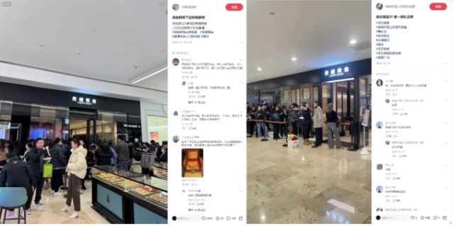 老铺黄金在全国高端商场门店的排队现象在小红书引发热议