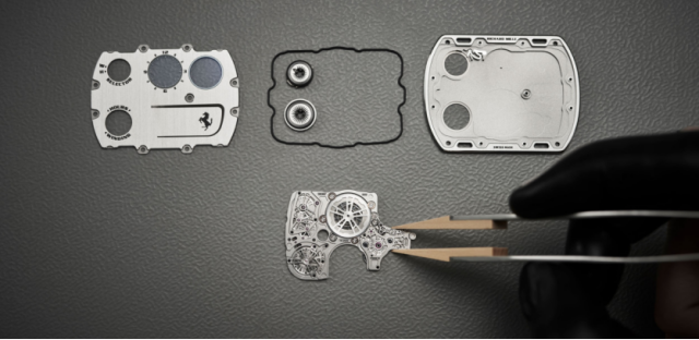 历经数十个腕表原型、超过6,000小时的研发与实验室测试后,RM UP-01 Ferrari腕表的厚度仅为1.75毫米,成为如今最薄的机械腕表,其机芯厚度仅为1.18毫米,充分体现了“技艺决定美学形式”的理念。挑战超薄腕表需要摒弃叠加齿轮和指针的传统机芯设计。因此,RICHARD MILLE理查米尔将无法叠加的零部件,分散到更宽的平面,创造出机芯与表壳的完美共生,同时彼此间保证两者所必需的刚性。