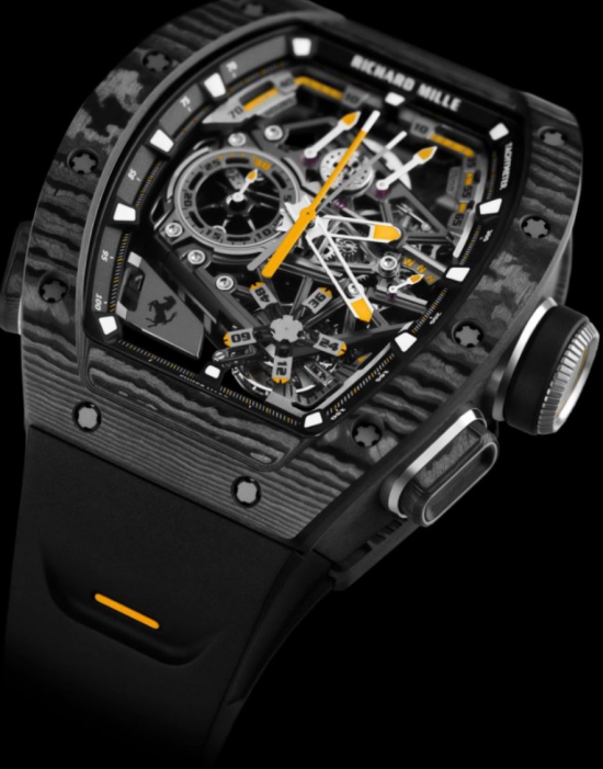 RICHARD MILLE表壳研发技术总监Julien Boillat说道,“两款表壳展现了两种截然不同的个性:钛金属表壳尽显‘绅士车手’气质,而Carbon TPT®碳纤维表壳则更加凸显狂放不羁、无拘无束的生活态度”。